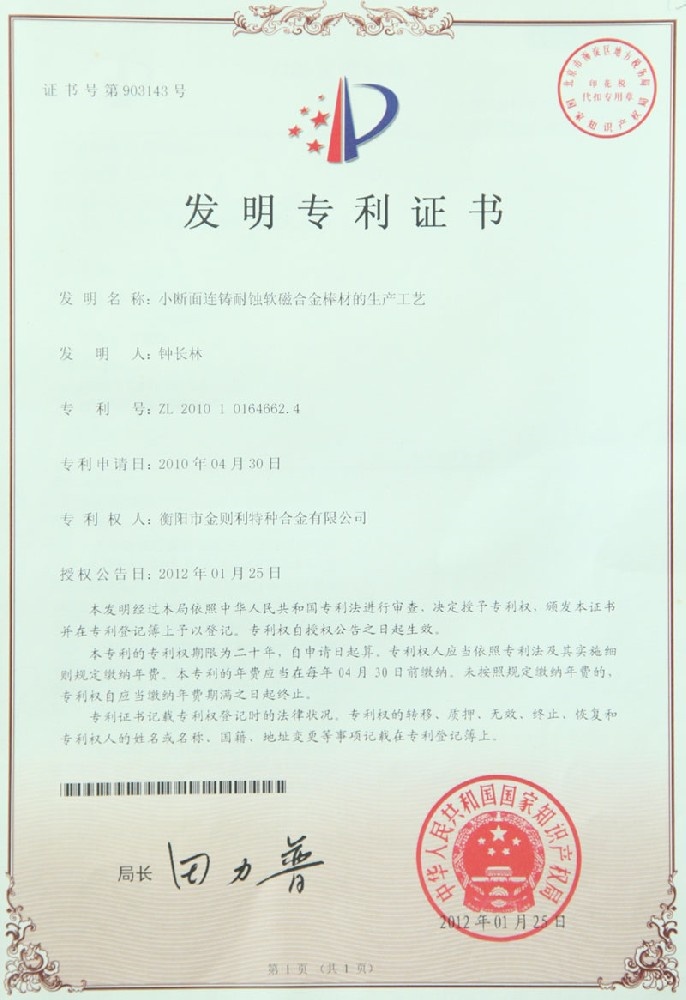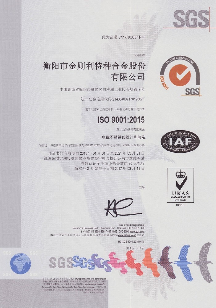 衡陽(yáng)市金則利特種合金股份有限公司成立于一九九九年十二月,注冊(cè)資本人民幣兩千兩百萬(wàn)元。注冊(cè)地址:衡陽(yáng)市雁峰區(qū)白沙洲工業(yè)園長(zhǎng)塘路2號(hào)。公司主營(yíng)耐蝕軟磁合金,為湖南省高新技術(shù)企業(yè)。公司自成立以來(lái),即致力于耐蝕軟磁合金的研發(fā)。 研制出的JL-31(00Cr13si2Pb)、JL-31B(00Cr13si2)、JL-31BS(00Cr13Si2S)、JL-37B(0Cr17Si2)、JL-37(0Cr17···